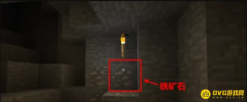3.在挖掘过程中如果发现如下图所示的带微黄斑的石头,这个就是铁矿,前期不可错过。