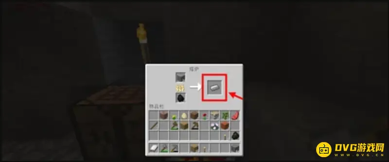 1.挖掘之前我们需要制作石镐,刚开始我们最多可以制作石镐。摆放如下图: