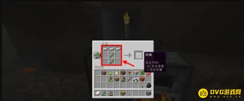 5.合成3块铁锭后就可以和小木棍组合出铁镐