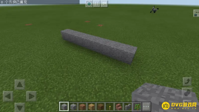 6、最后点击发送,就出现了一排石头,左上角的“以填充8个方块”就是填充的方块数量6、最后点击发送,就出现了一排石头,左上角的“以填充8个方块”就是填充的方块数量