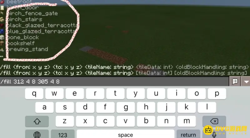 5、然后,输入fill,再输入刚才的两个坐标;这上面出现了一排单词,这是各种物品的英文,如下图输入的是一个最简单的stone(石头);5、然后,输入fill,再输入刚才的两个坐标;这上面出现了一排单词,这是各种物品的英文,如下图输入的是一个最简单的stone(石头);