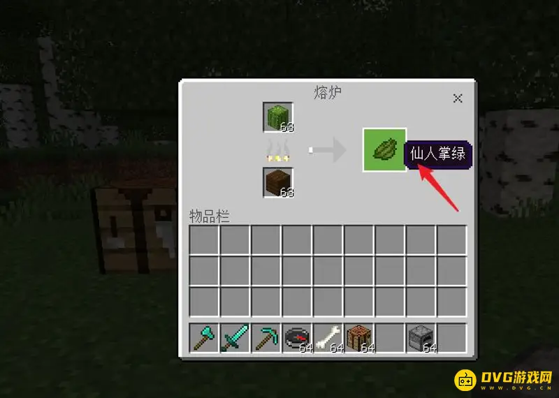 3.合成仙人掌绿:将采集来的仙人掌方块放入熔炉,添加燃料得到仙人掌绿。