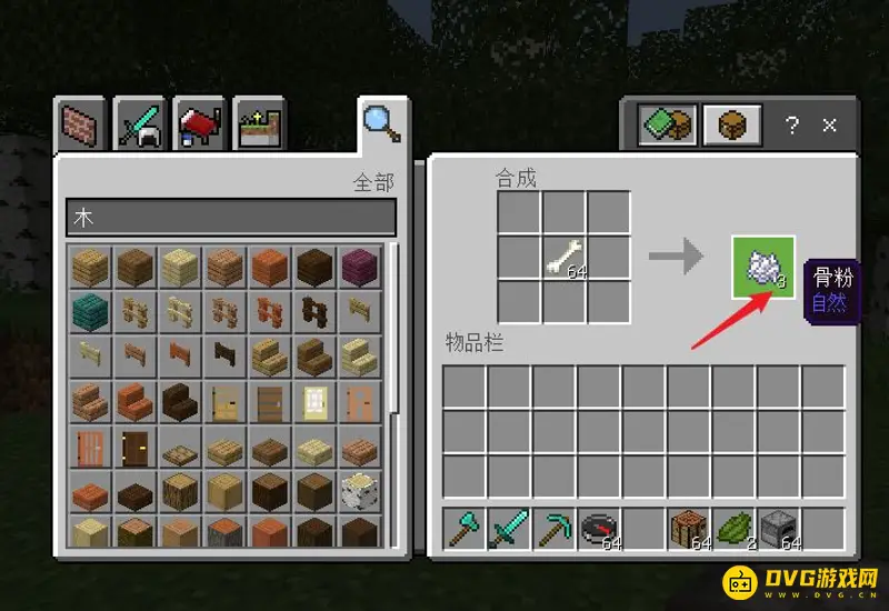 4.分解骨粉:将骨头放入工作台制作界面,分解为骨粉。