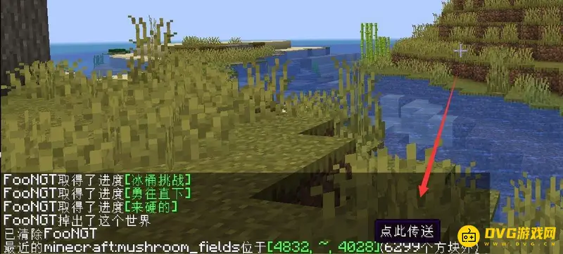 5、接着,系统会查询一段时间,然后生成该地形的坐标,我们点击坐标可以进行传送。