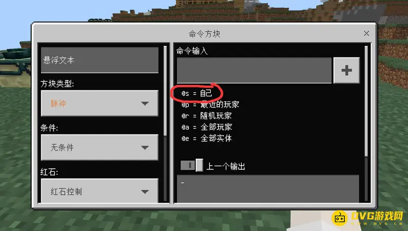 2,然后就可以在方块界面的右侧发现,@s是自己的意思。