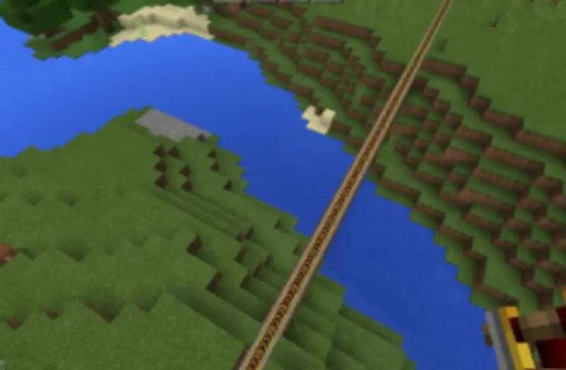 4、然后就可以乘坐啦!(乘坐时要先往前移动一点,这样才能激活动力铁轨)