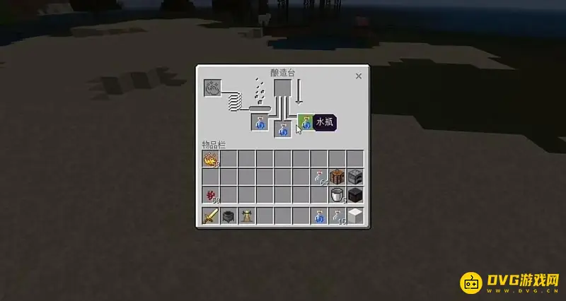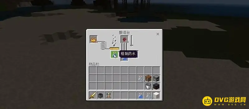 8.放置完毕后,酿造台会自动产生反应。稍等片刻后,水瓶变成了”粗制药水“。