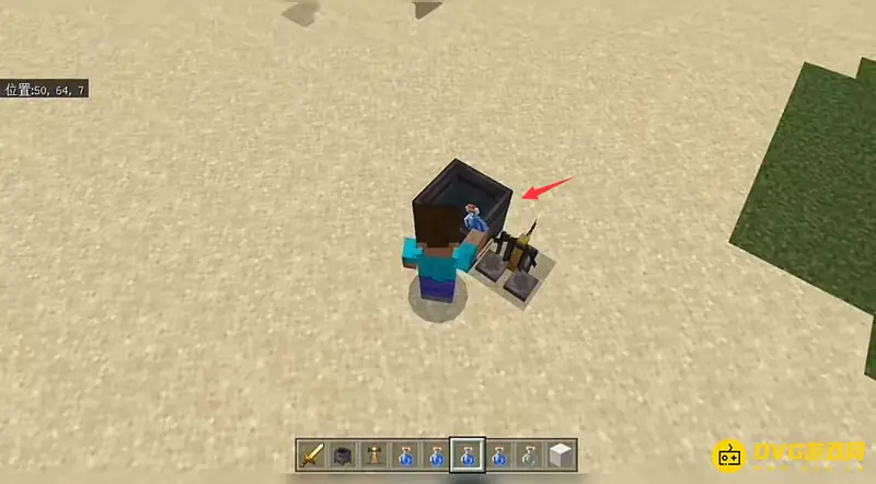 5.然后右键点击酿造台,在酿造台下方放置3个水瓶。