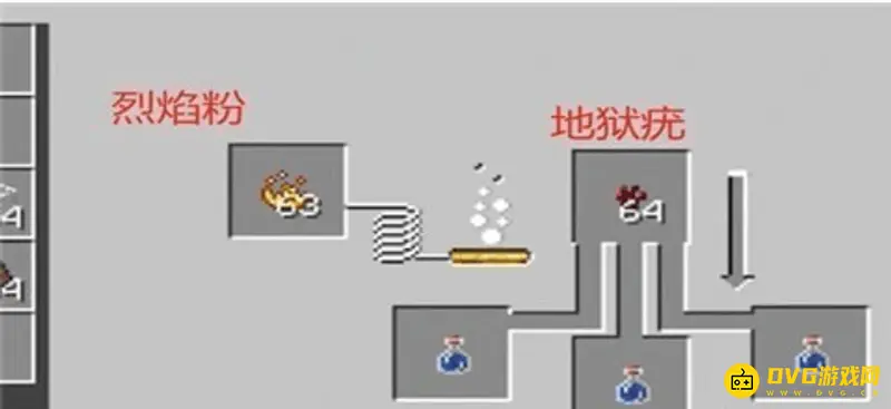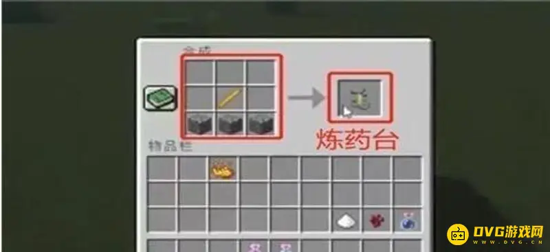 2、第二步合成炼药的台。炼药台是需要3个“原石”和一根“烈焰棒”,按照图示位置摆放