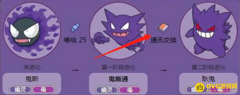 鬼斯在25级进化为鬼斯通。通过通讯交换,鬼斯通可以进化为耿鬼。 可以找一个同样有鬼斯通的,进行互相交换,这样双方都可以获得耿鬼。