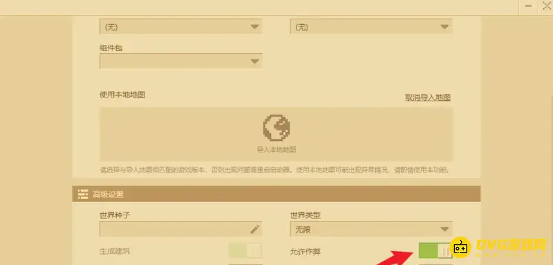 1、新建世界存档时,作弊开关要打开。