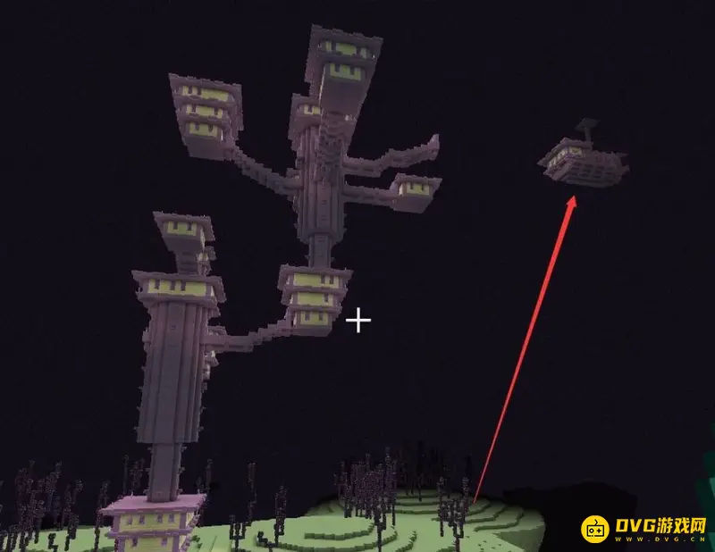 2、击败末影龙之后会看到空中有一个末影船的传送入口。向里面扔一个末影珍珠可以进入里面。