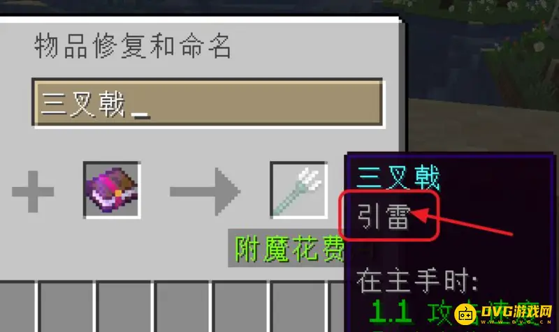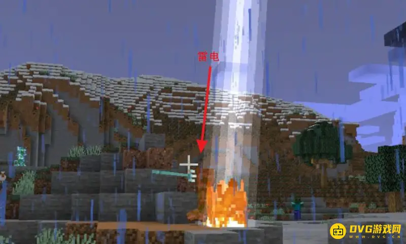 4、在雷雨天气下在野外找到爬行者,然后右键按住三叉戟对准爬行者扔出就可以触发引雷效果了,会从天而降一道闪电击中爬行者。