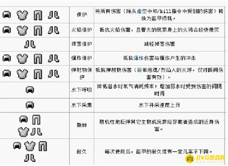 ②火焰保护降低——降低燃烧和在岩浆所受到的的伤害值。