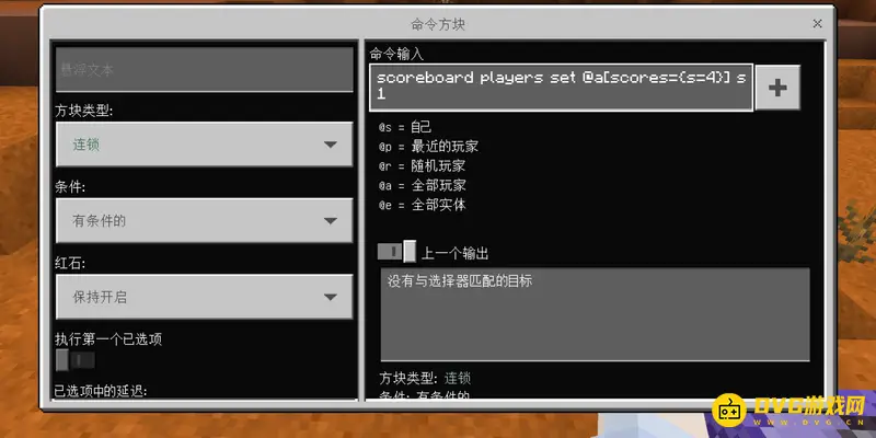 4:为分数等于4(即分数大于选项的数量)的人设置他的分数为1指令:/scoreboard players set @a[scores=] s 1