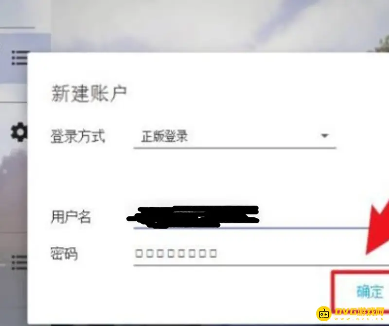 4.最后,将正版账号的用户名、密码填写好点击确定按钮即可完成登录。
