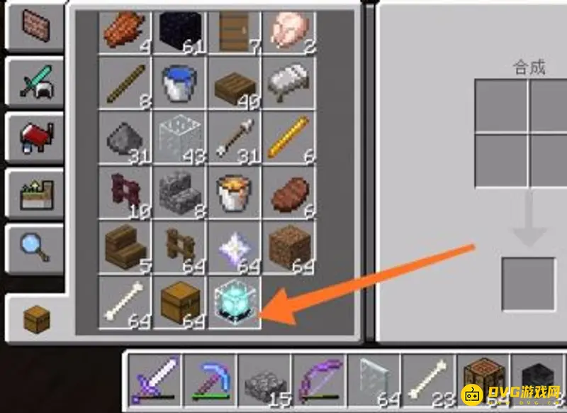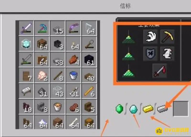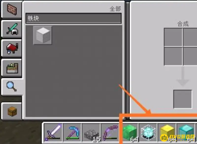4.然后我们开始准备绿宝石块,钻石块,黄金块和铁块,准备充足的这些材料,可以进行搭建了