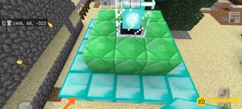 6.然后我们继续向下延伸,在第三格使用钻石块,制造一个5x5的钻石基座