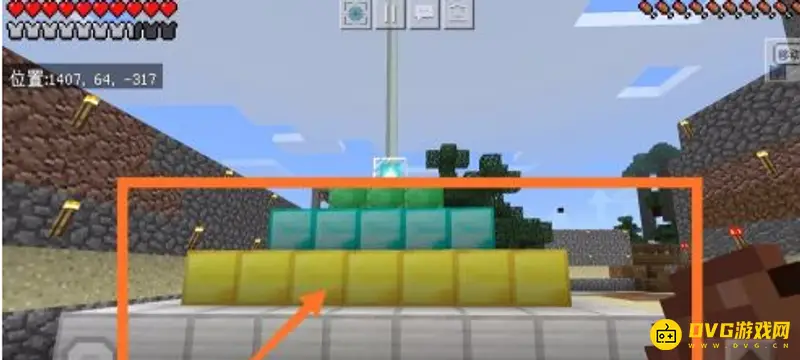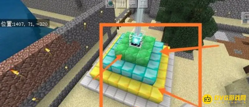 7.之后我们如法炮制,继续向下延伸,使用黄金块制作一个7x7的黄金基座