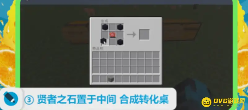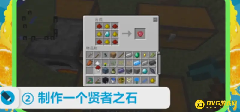 3、用4个“红石粉”,4个“萤石粉”,一块“钻石”制作“贤者之石”。