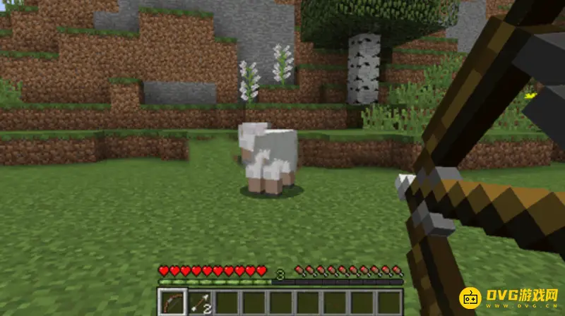 1、使用弓瞄准目标,在此选择的目标是一头羊。
