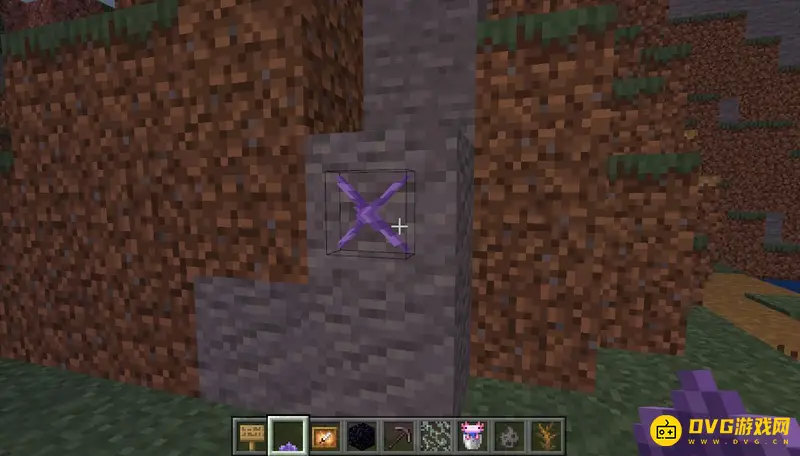 拿着紫水晶右键点击石头等物品即可把水晶种在上面。