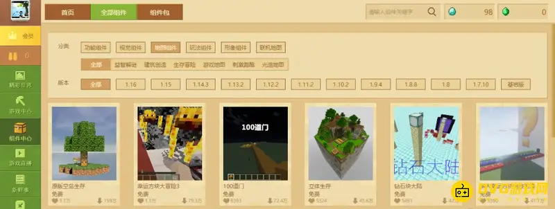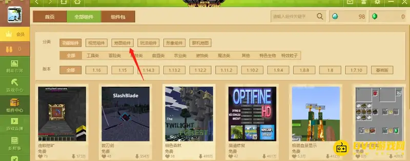 一、首先点击【我的世界】主界面上的组件中心,然后点击上方的全部组件;