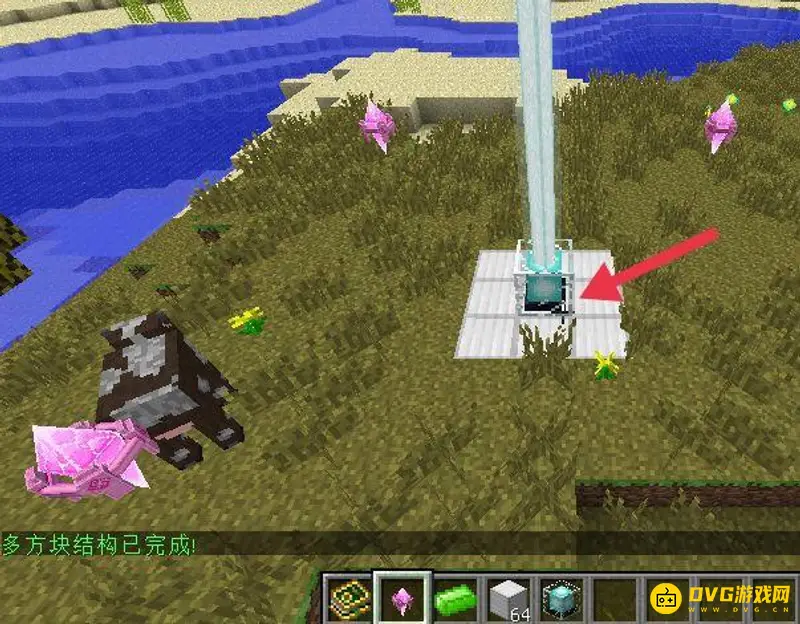 2.搭成如图的样子,然后手持泰拉钢按下shift+右键。