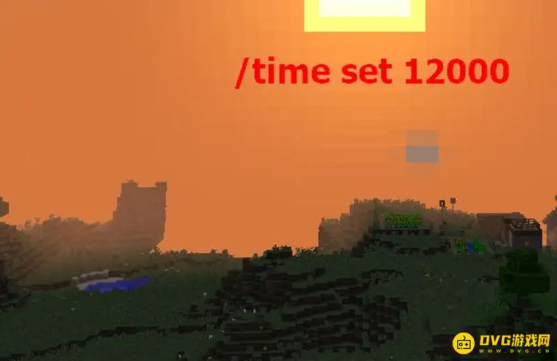 6.输入【/time set 12000】按回车键就是将时间调整为黄昏。