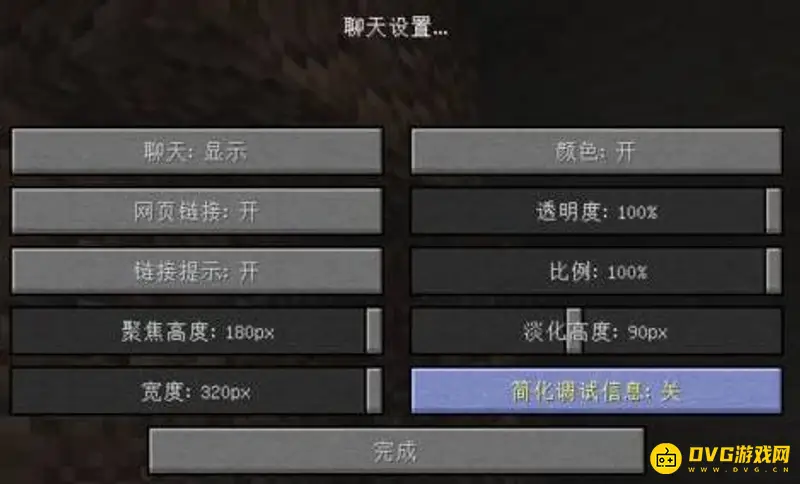 1、首先,在进入游戏后,打开设置界面,点击聊天设置,将[简化调试信息]的选项设置为关。