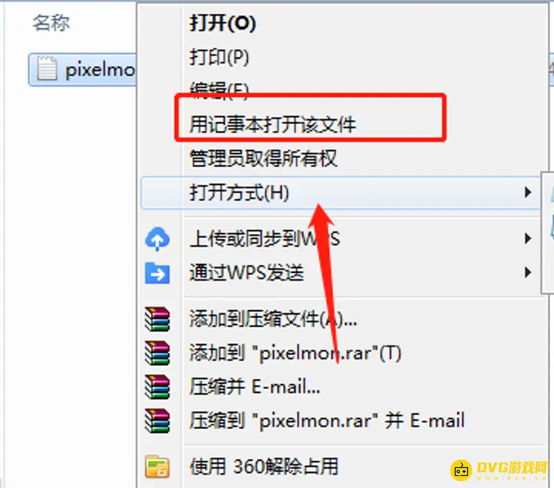 4、之后玩家需要找到pixelmon文件,然后再右键点击【用记事本打开该文件】。