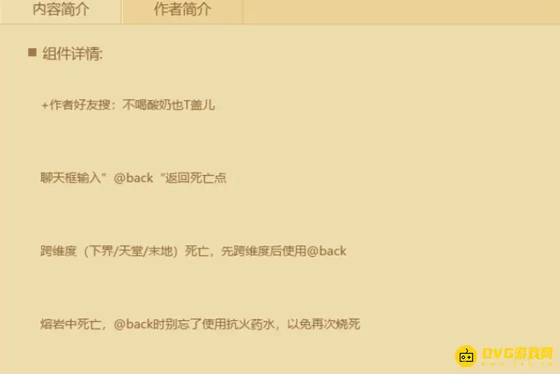 4.下图为此模组使用方法:输入@back即可回到死亡地点