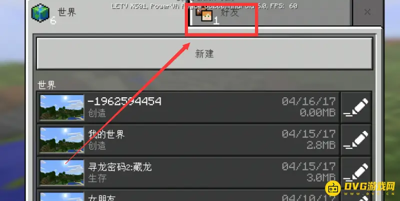1、首先我们进入我的世界游戏,创建一个世界后点击右上角的好友,如下图所示: