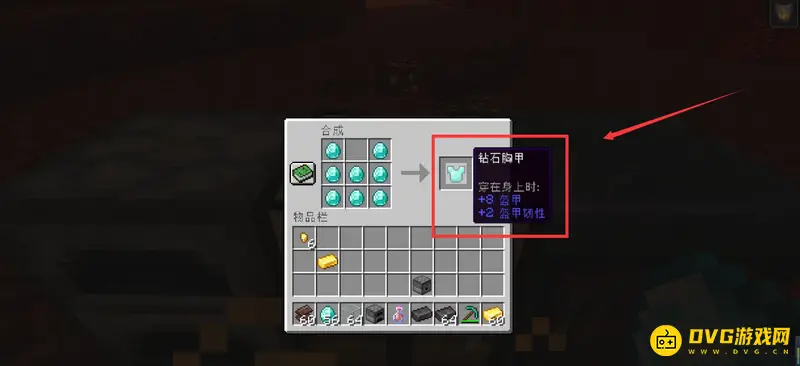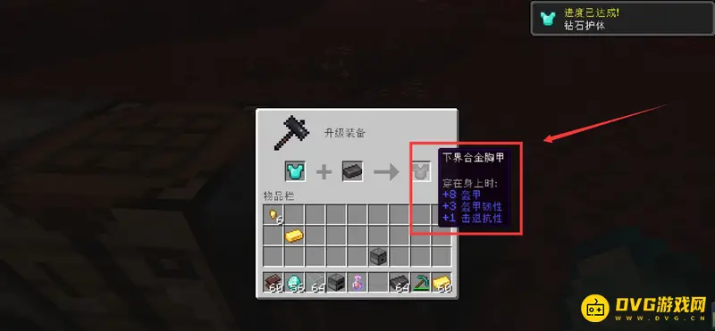 5.最后,我们在锻造台中将钻石装备与下结合金锭进行合成即可得到下界合金装备。