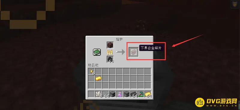 2.获得远古残骸以后,我们需要在熔炉中对远古残骸进行熔炼,一个远古残骸可以获得一个下界合金碎片。
