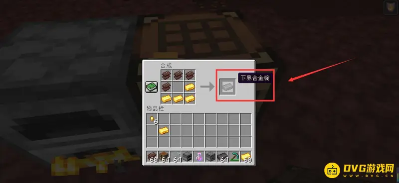3.然后,我们使用四个下界合金碎片和四个金锭可以合成一个下结合金锭。