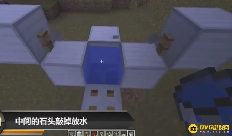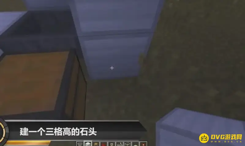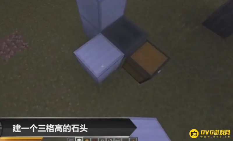 1、首先建一个三格高的石头,然后中间的那块敲掉。