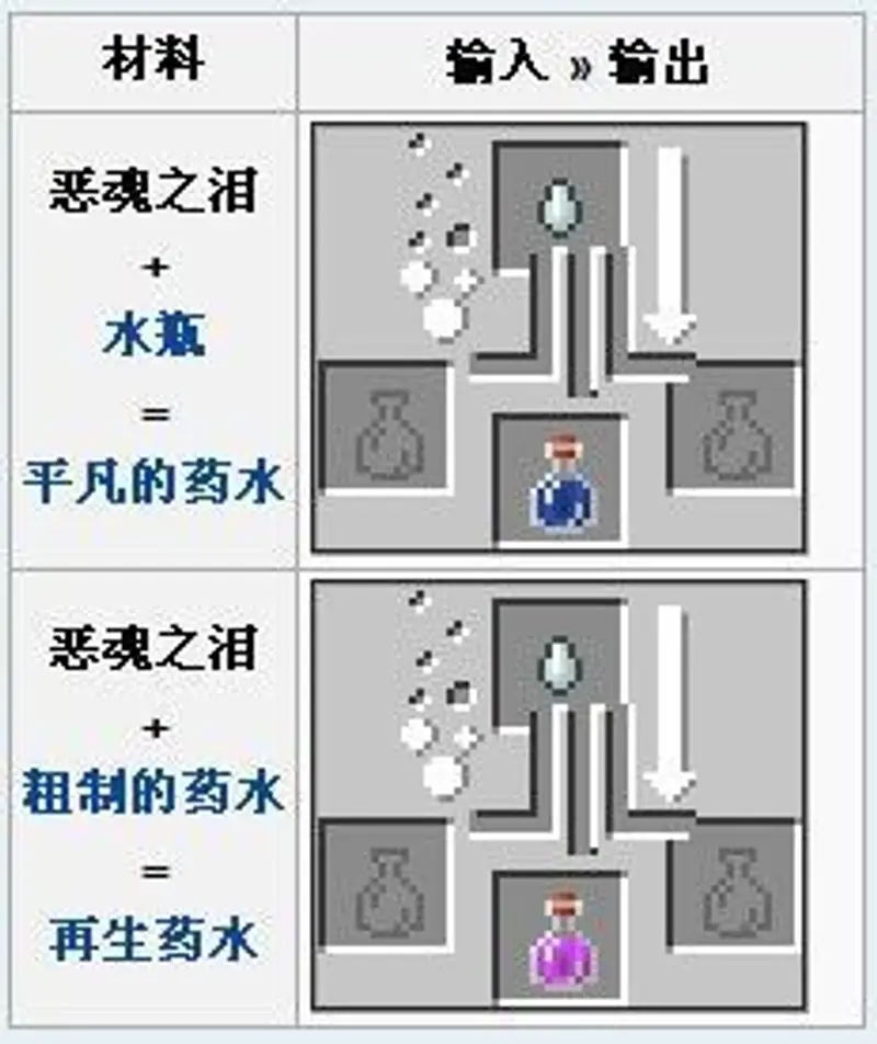1. 恶魂之泪是酿造材料,它可以把粗制的药剂变成再生药水,或把一瓶水变成平凡的药水。