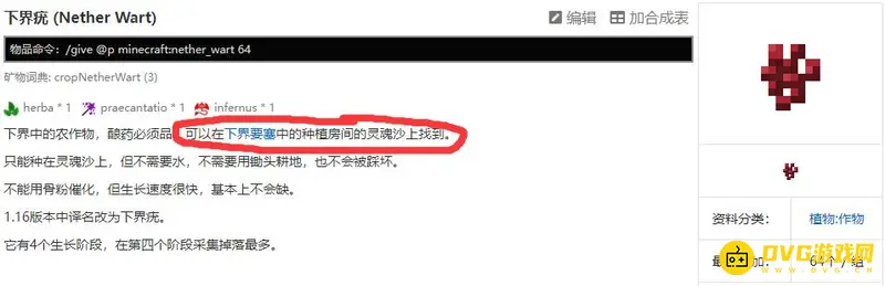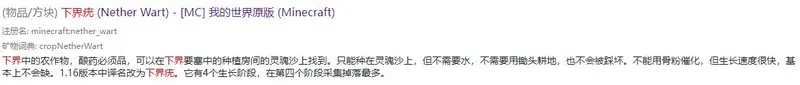 2,然后就可以在界面上方发现,下界疣可以在下界要塞中的种植房间的灵魂沙上找到。