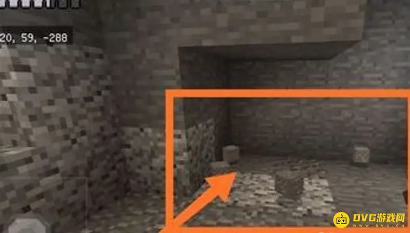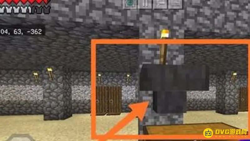 3.接着找到铁矿石。铁矿石广泛分布在地层之间,可以使用石镐挖掘,挖掘之后,靠近即可拾取。