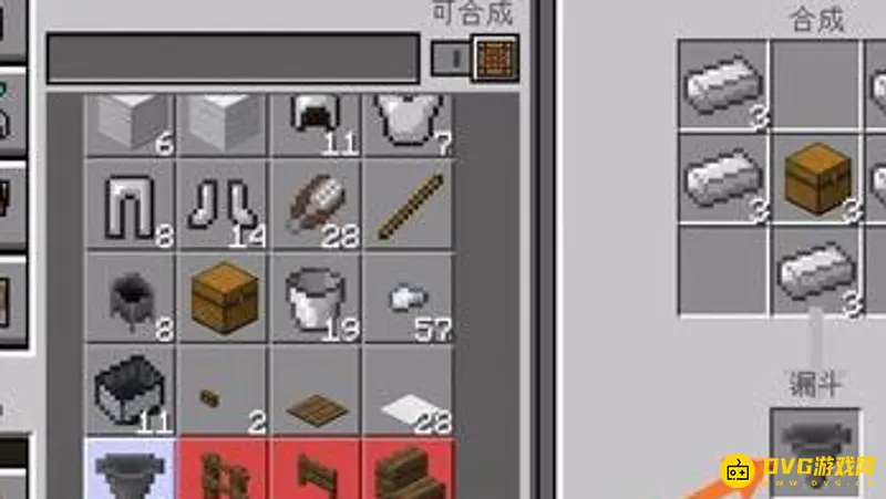 5.箱子制作好了后点击熔炉,在输入煤炭和铁矿石,输出端就可输出铁锭。然后点击工作台,搜索输入漏斗,娄底就可以制作了。