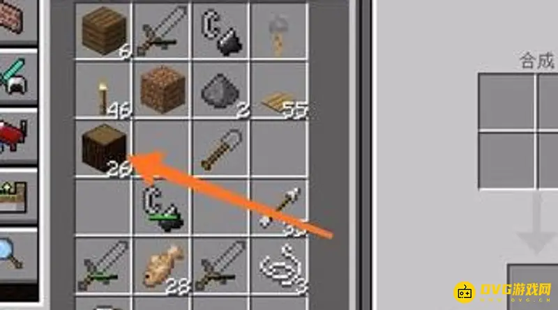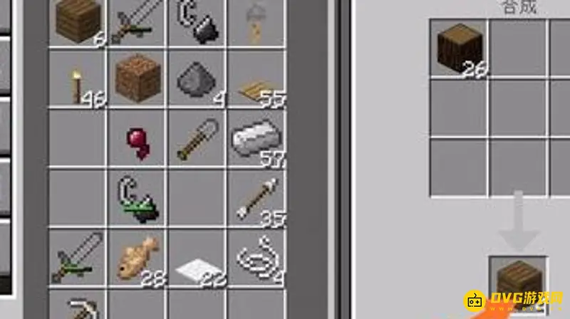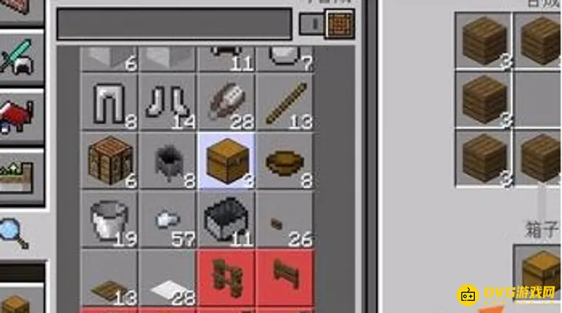 4.原料凑齐之后,首先点击工作台。将橡木块制作成项目板。然后使用橡木板制作箱子,箱子多制作几个备用。
