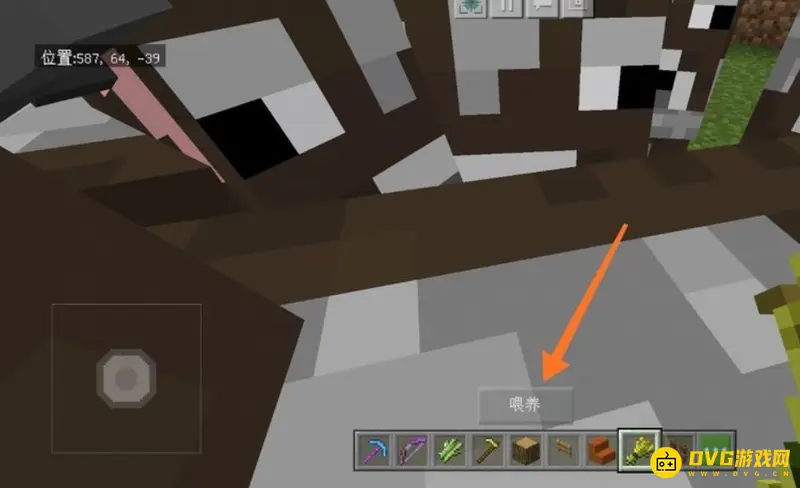 8、最后我们拿着小麦靠近牛,当出现喂养这样之后我们点击。