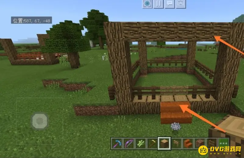 6、接着我们为整个牛圈封顶,防止雨水和怪物进去。