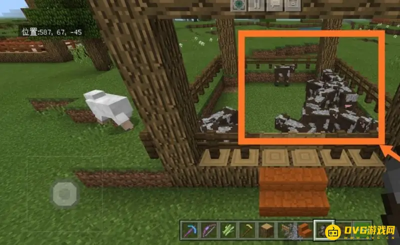 7、然后我们拿着我们的小麦,将我们所有的牛引进我们的牛圈里即可。