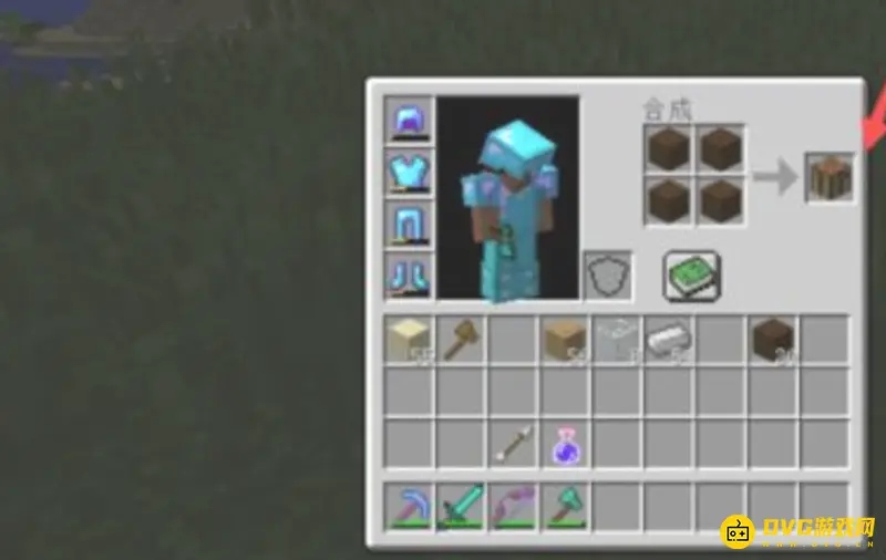 3.如果没有工作台,那么按E键,将分解出来的木板,用4个合成出一个工作台,因为梯子需要在工作台中才能合成。