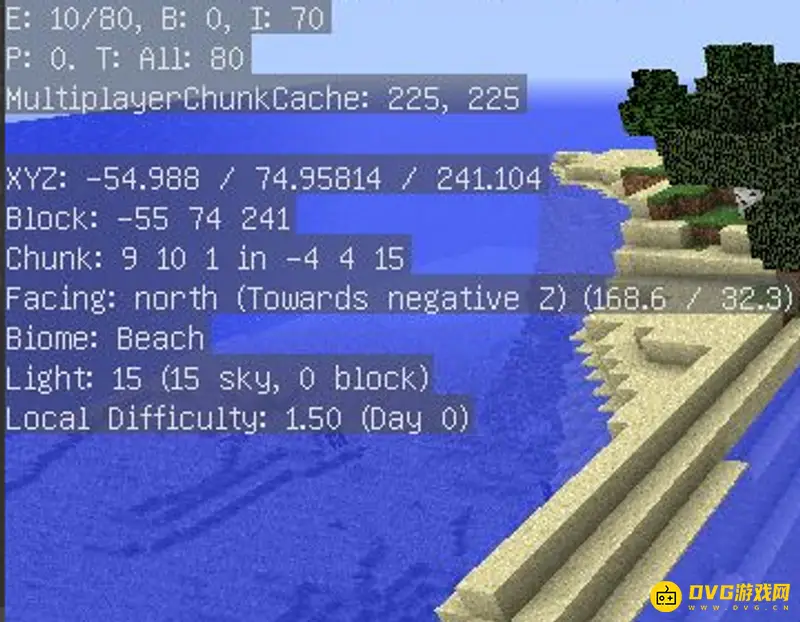 2、来到这两个位置,记下坐标。(x:-54 y:74 z:241)(x:-106 y:30 z:153)。