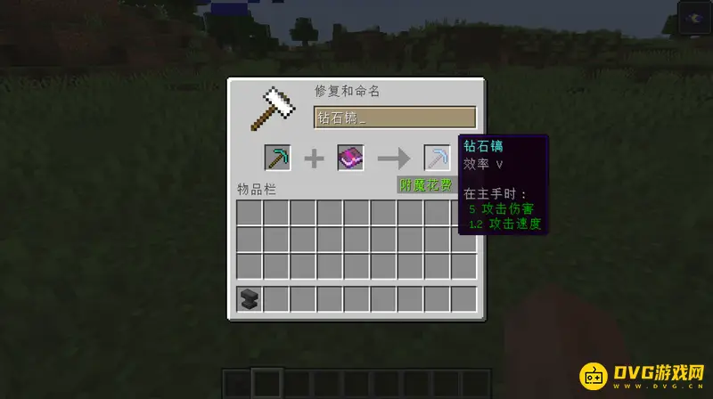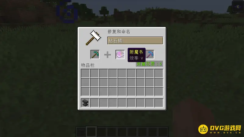 3、然后将准备使用的附魔书放到第二个栏位,可以看到附魔需要花费玩家五级经验。