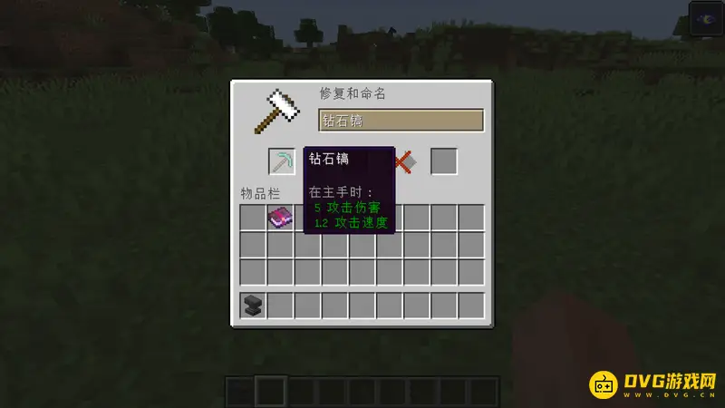 1、打开游戏我的世界,玩家想要使用附魔书给物品附魔需要使用铁砧,玩家拿出放置好铁砧,用鼠标右键点击铁砧。