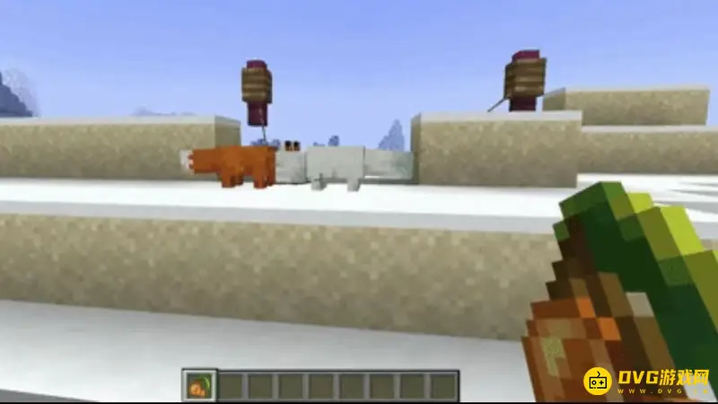3、准备好食物后,就要找到一对狐狸,想要驯服白狐,最好去找到两个白狐。如果父母是不同的种类,那么小狐狸是红狐狸还是白狐的几率各占一半。但是可能比较难找,一红一白也可以,多让其繁殖几次即可。首先,确保它们靠得很近,给它们吃甜浆果,直到他们的头上出现爱心。